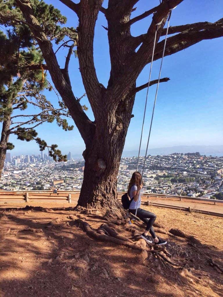 Watch a sunset hill overlooks the San Francisco skyline and features the nearby Sutro Tower which can be seen from the top of the hill. And the best part? It's never too crowded with tourists! It can get a bit windy up here, so make sure to bring a light jacket. Perhaps one of San Francisco's best kept secrets, there is on the dreamy hilltop a swing. Location: 3400-3416 Folsom St, San Francisco, CA 94110